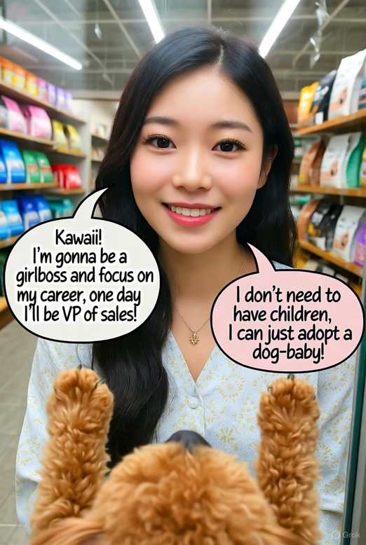Siamo una società fortemente edonistica ed opulenta, dove le donne passano gli anni più fertili a imbottirsi di contraccettivi, a saltare da un uccello all'altro, a fare selezione spietata su Tinder, ad andare in Erasmus, a mangiare sushi e a studiare per fare una carriera che le renderà solamente più pretenziose riguardo alla scelta del partner e ridurrà il numero di uomini papabili per mettere su famiglia.