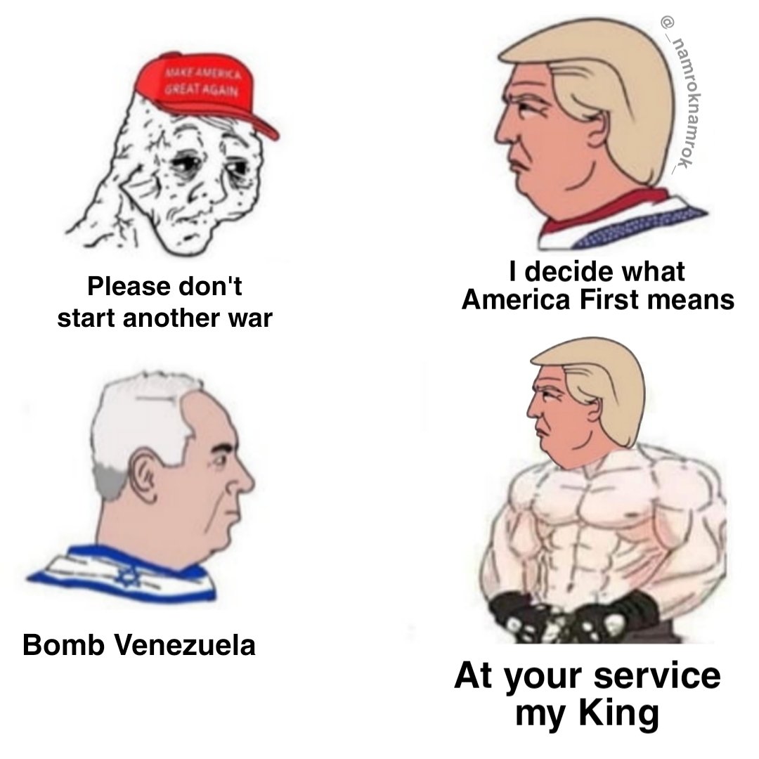 Hanno fatto lo stesso giochetto che in Siria: "cacciato Assad!!", e invece la politica estera siriana è rimasta la stessa di Assad (al punto che Israele sta facendo di tutto per rovesciare il "nuovo" governo siriano). E dunque: "arrestato ed estradato Maduro!", e invece il governo venezuelano