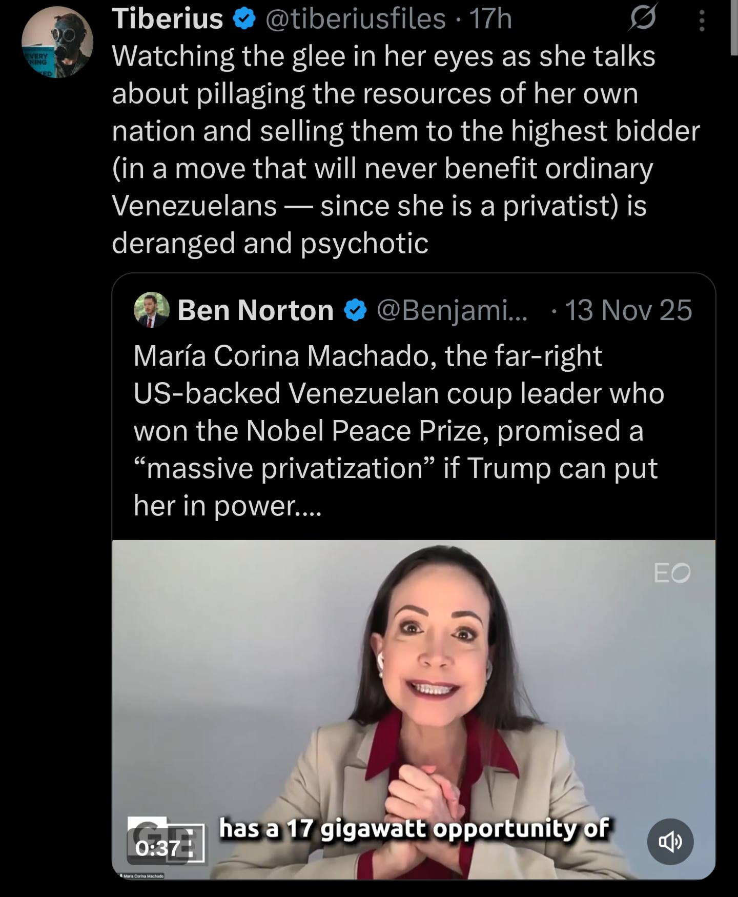 Fun Fact #4: la candidata di Blackwater foraggiata da Londra, tale Marina Machado, per tramite dei suoi scagnozzi sta sbraitando fortissimo che nel governo venezuelano non è cambiato nulla