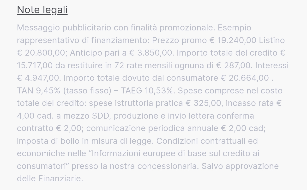 cioè il concessionario per restare a galla deve farti pagare l'auto a rate (e labbanca™ ti spenna con tag taeg tuareg tuamadreg), e quindi deve fare furbate sui tagliandi e ridurre lo stipendio a 1300 ai dipendenti (perché il costo dell'auto a rate è più alto, e quindi per "adagiare" deve pur tagliare da qualche parte)
