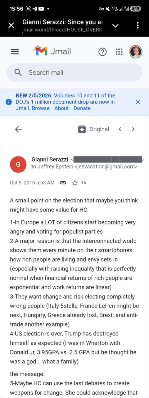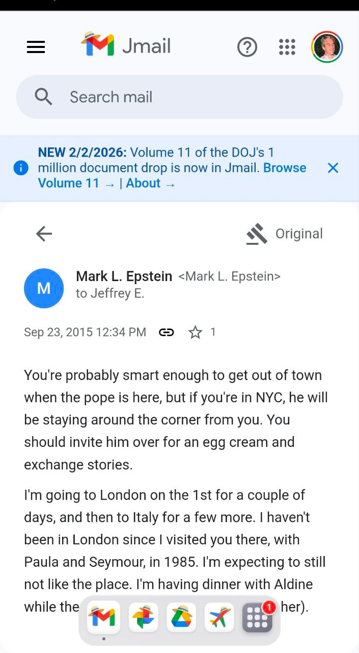 - è stato un errore madornale appoggiarsi a Gmail. Ma evidentemente Epstein ha amici in Google che gli garantiscono che occhi indiscreti non guarderanno la sua casella di posta e quella dei mittenti. O semplicemente aveva un "server privato" come Killary Clinton…