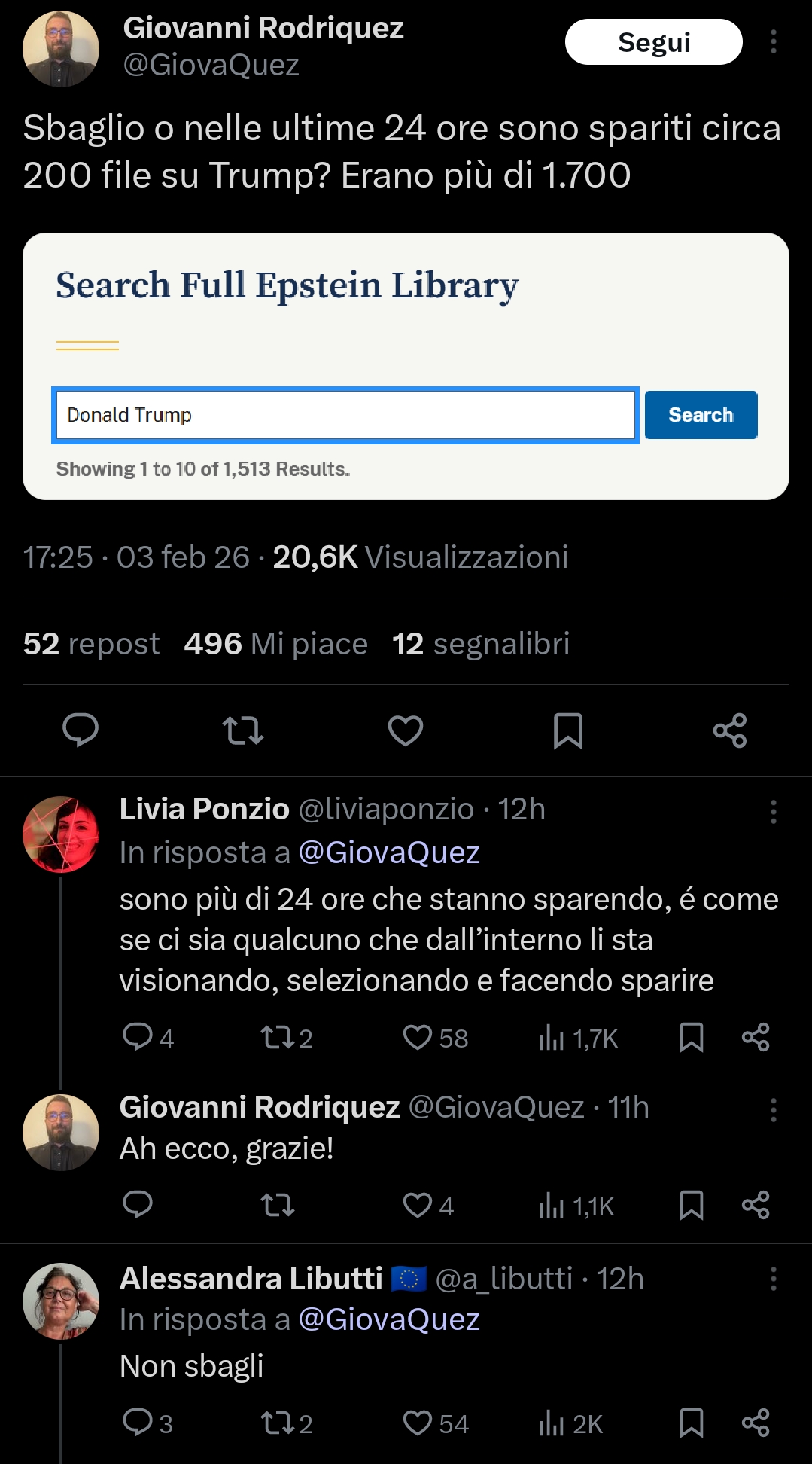 Comunque basta che vai sul sito del Dipartimento di Giustizia e visioni i documenti, ammesso che non li abbiano tolti nottetempo (EFTA01660679 e EFTA01660651 sono andati offline e online svariate volte).