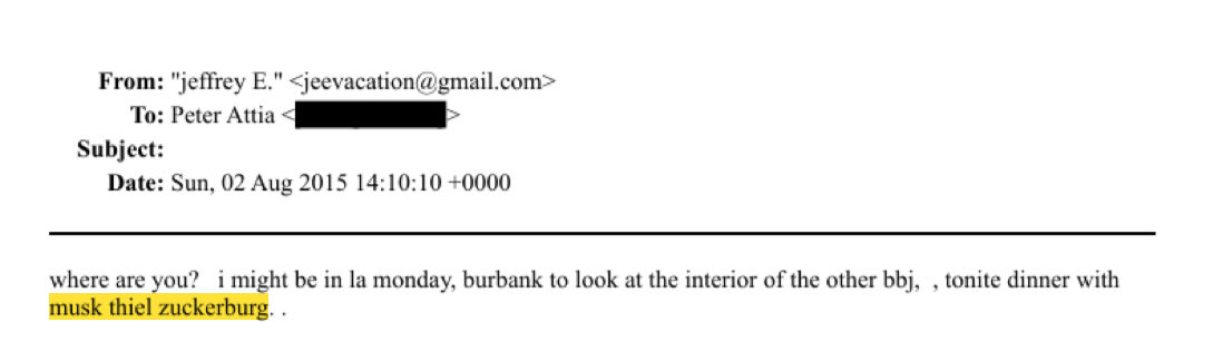 >>215815 >Musk - letteralmente prega Epstein di partecipare alle "feste dvre" sulla sua isola - Musk si offre di fargli l'impianto fotovoltaico allo Zorro Ranch - Epstein gli porta le sue "ragazzine" a fare un giro di SpaceX, poi gli prenota un "massaggio" - Epstein gli procacciava donne per il fratello Kimbal - Cenetta con lui e Thiel e Zuck Eccetera eccetera, probabilmente me ne sono scordate altre