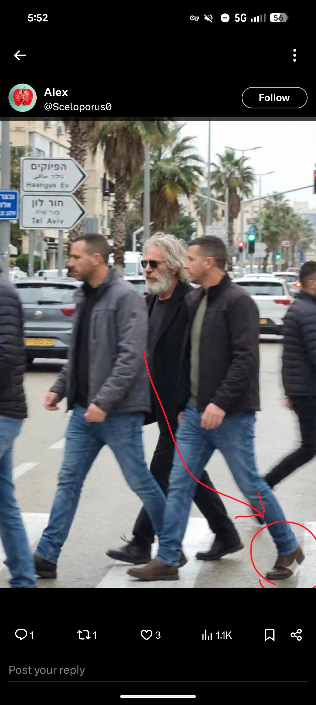 >>215613 >Non sono palesi, Beh dai, il più banale beccarlo proprio davanti ad un cartello con su scritto Tel Aviv, e capita pure proprio quello con la traslitterazione in inglese