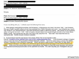 Considerando che nelle email ci sono diversi indizi legati anche ad antropofagia e cannibalismo, non oso immaginare a cosa si riferisca. Ci sono email in cui si fa riferimento ad allegati contenenti foto e snuff movie di torture, uccisioni, stupri, abusi su minori, che, come è stato sottolineato al momento della pubblicazione dei documenti, non sono stati divulgati ma sono presenti tra gli atti dei processi. Ci sono email in cui si fa riferimento a persone fatte sparire, morte per strangolamento durante le orge organizzate da Epstein e sepolte sotto campi da golf o ranch privati.